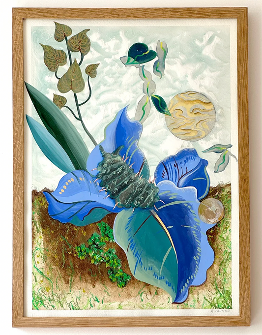 Ailsa Munro is a British artist, creating illustrative limited edition prints, as well as collaged and cyanotype originals. In her art world nature is sprawling, filling the frame with abundant lifeforms. She studied textile design at University of Brighton and art at Wimbledon School of Art. With almost microscopic accuracy, Munro’s work focuses on the vegetative world, the topic of climate change and the de- and re-wilding of our planet - an interconnected network of living organisms that often appear still, but fizz with energy and life.