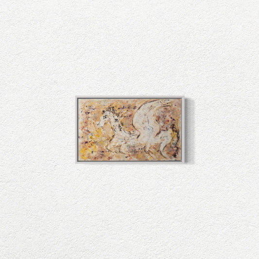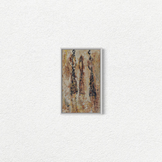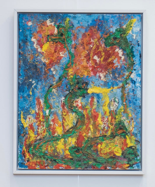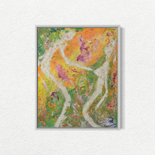 She is captivated by the colours of life—the intensity of emotions, the romance in everyday moments, and the whimsical beauty of nature. By layering texture, she gives her paintings a tactile depth that enhances their physical presence. This extra dimension breathes life into each scene, from the nuanced gaze of an animal to the playful exchanges and layered bonds between people. Her exploration of relationships is both serious and light-hearted, blending humour with a romantic spirit that she sees as essential to understanding human nature.